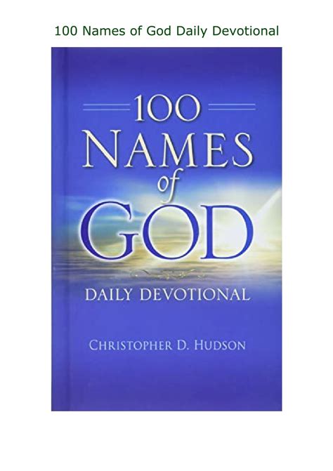 Read Online 100 Names of God Daily Devotional PDF By Click Button. 100 Names of God Daily Devotional it’s easy to recommend a new book category such as Novel, journal, comic, magazin, ect. You see it and you just know that the designer is also an author and understands the challenges involved with having a good book. You can easy klick for detailing book and you can read it online, even you can download it